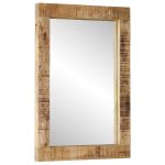 Cet ensemble de meubles de salle de bain pratique est un excellent supplément à votre salle de bain, ce qui lui donne une apparence ordonnée et saisissante ! Bois de manguier massif : l’armoire est fabriquée en bois de manguier massif combinée au bois d’ingénierie. Le bois de manguier massif est un bois dur tropical solide qui fait des meubles robustes. Ses beaux grains de bois rendent chaque meuble légèrement différent l’un de l’autre.Grand espace de rangement : le meuble de rangement de salle de bain dispose d’un tiroir, offrant un grand espace de rangement pour ranger des articles dans votre salle de bain.Pieds stables : les pieds en fer de l’armoire de salle de bain assurent sa robustesse et stabilité.Design pratique : le dessus du meuble-lavabo de salle de bain est idéal pour placer le lavabo.Image claire : la face du miroir en verre offre une image claire. Ainsi, vous pouvez profiter d’un reflet magnifique et naturel lorsque vous vous tenez devant. Attention :Pour éviter qu’il ne soit renversé, ce produit doit être utilisé avec le dispositif de fixation au mur fourni.Bon à savoir :Le lavabo n’est pas inclus dans la livraison.Les vis et les chevilles pour l’intérieur du mur ne sont pas incluses. Nous vous conseillons de trouver et d’utiliser des vis et des chevilles adaptées spécifiquement à vos murs. Si vous n’êtes pas sûr, vous pouvez consulter un professionnel. Veuillez lire et suivre chaque étape des instructions.Chaque article est unique, avec des variations de couleurs et de grains. La livraison est aléatoire, ce qui garantit l’exclusivité et l’individualité de votre produit.